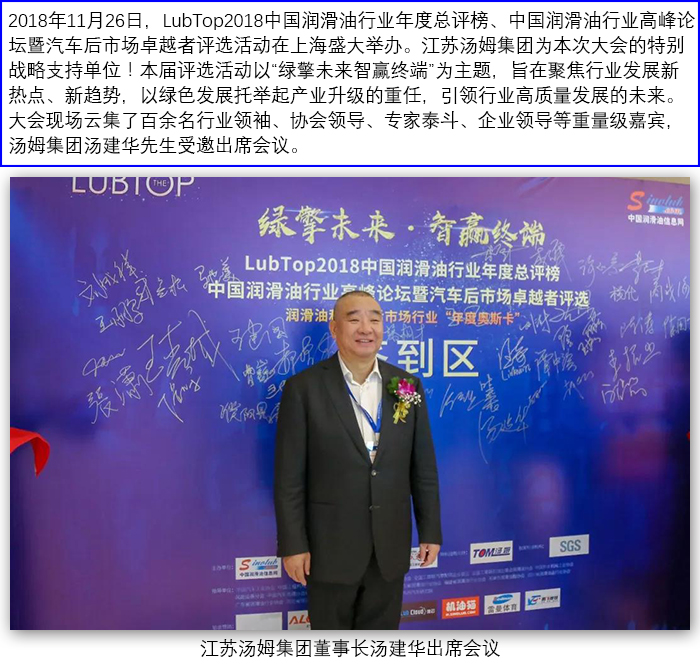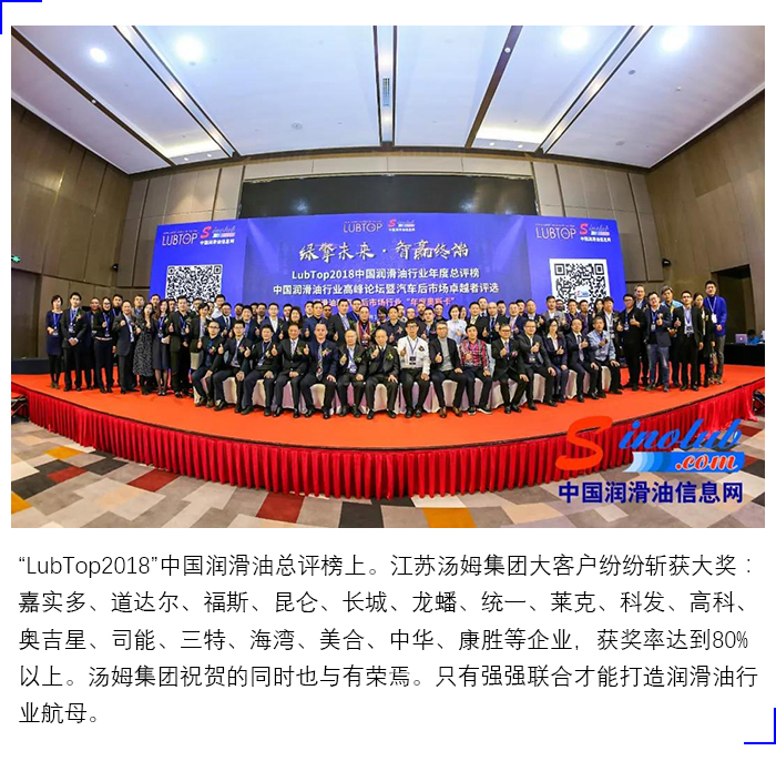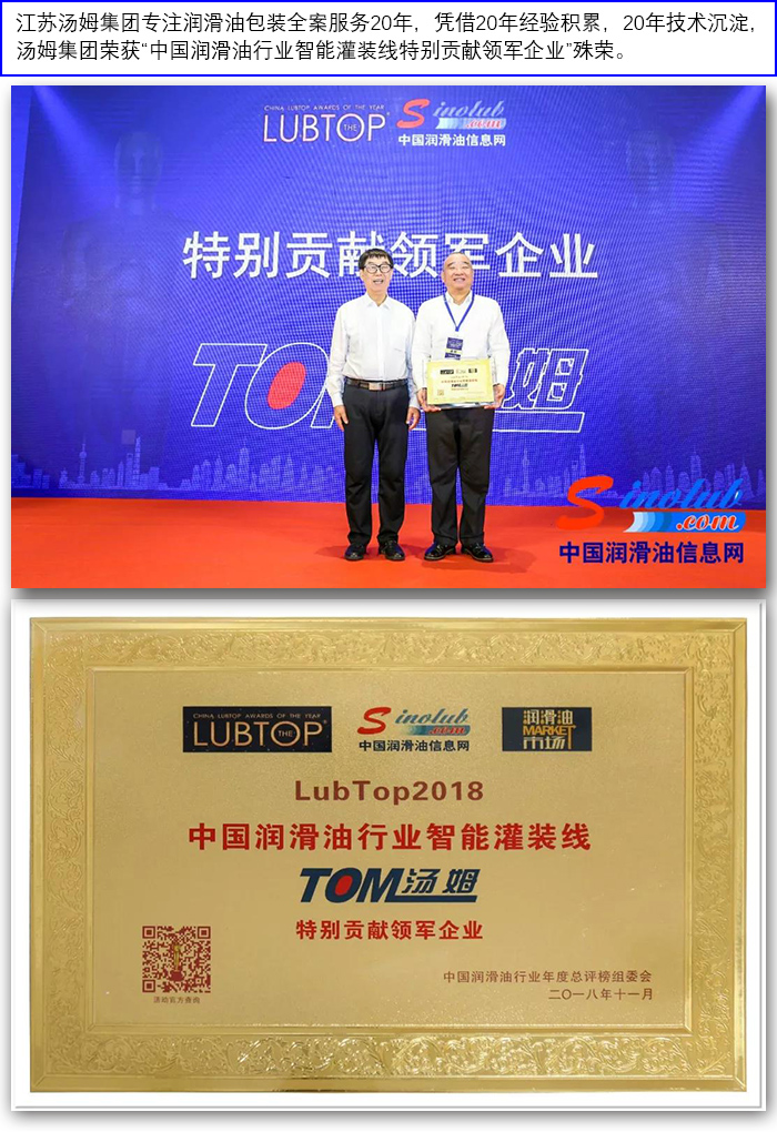 湯姆集團(tuán)榮獲"LubTop2018中國(guó)潤(rùn)滑油行業(yè)智能灌裝線特別貢獻(xiàn)領(lǐng)軍企業(yè)"稱號(hào)