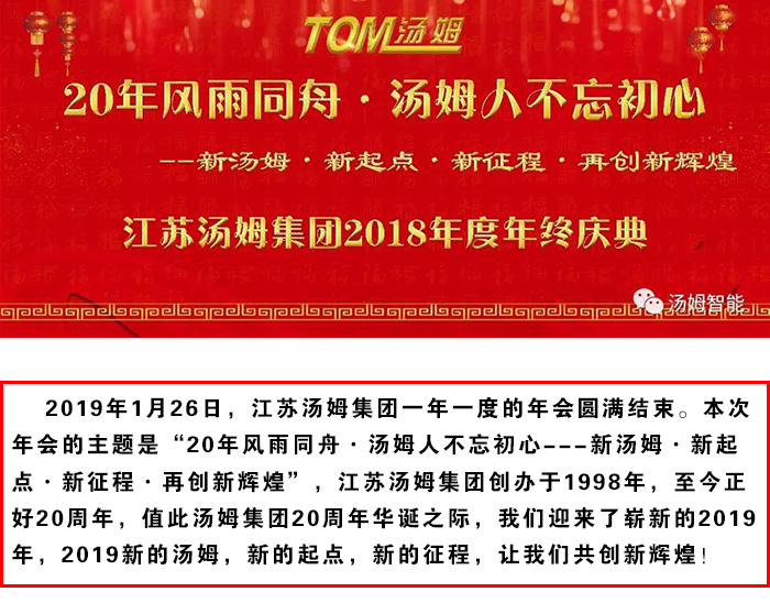 20年風(fēng)雨同舟·湯姆人不忘初心---江蘇湯姆集團(tuán)年終慶典圓滿結(jié)束!