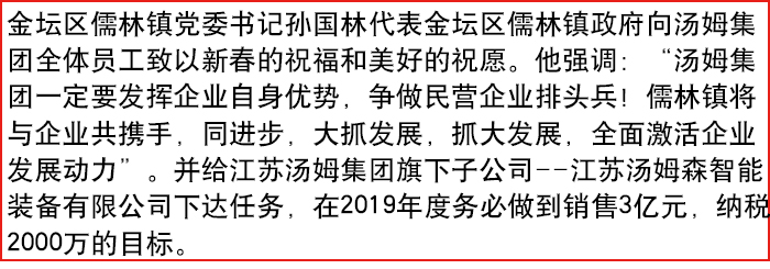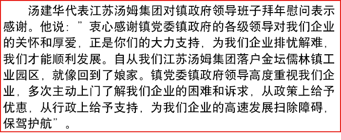 金壇區(qū)儒林鎮(zhèn)政府領(lǐng)導(dǎo)班子來(lái)湯姆集團(tuán)拜年!