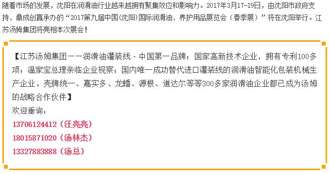 【展會(huì)信息】江蘇湯姆集團(tuán)亮相沈陽(yáng)國(guó)際潤(rùn)滑油展,歡迎新老客戶光臨!