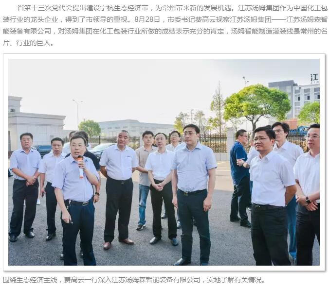 中共常州市委書記費高云視察江蘇湯姆集團(tuán) 對湯姆在化工包裝行業(yè)所做的成績表示充分的肯定