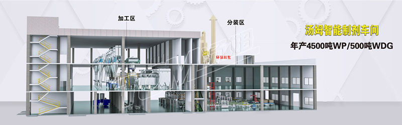 5、環(huán)保裝置在分裝區(qū)二樓樓頂,可以解決廠區(qū)的安全間距問題,并符合排放高度要求,而且所有的環(huán)保管道路線短更有效的解決車間除塵除味的環(huán)保問題。