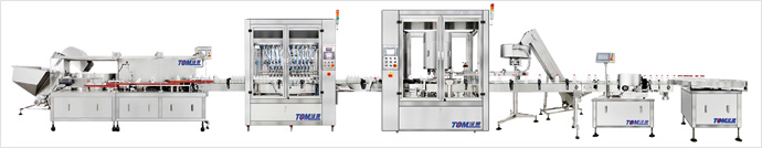 LP-7理瓶機(jī)、DGP-Z-16D直列式活塞灌裝機(jī)、XG-6B旋轉(zhuǎn)式旋蓋機(jī)(或Fxz-A直列式旋蓋機(jī))