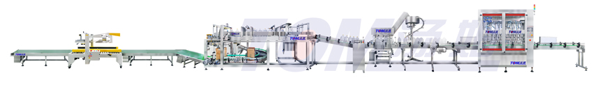本線適用于食用油中小型企業(yè)的小包裝、中速包裝,生產(chǎn)線配置4-12頭伺服控制活塞式灌裝機(jī)、全自動壓蓋機(jī)、貼標(biāo)機(jī)、開箱機(jī)、裝箱機(jī)和封箱機(jī)。