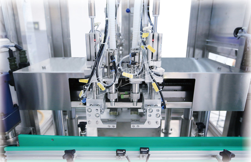 1、伺服驅(qū)動(dòng)跟蹤定位灌裝,灌裝走瓶同步進(jìn)行,速度快,精度高。